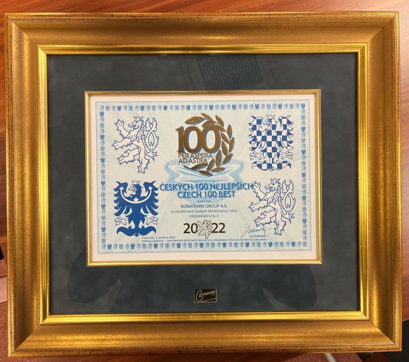 This year the company BONATRANS GROUP was successful in the category “Engineering and IT”. At the official presentation in Prague Castle’s Spanish Hall, the award was accepted by Michal Neumann, BONATRANS chief operations officer. He noted that the motto of the competition is “Per aspera ad astra”, i.e., through hardships to the stars. “In BONATRANS we have a star or stars in common, each of us has their obstacles at their own level, at the level of the departments and units, obstacles across the units, and also with suppliers or customers. In any case, this award belongs to everyone who contributed to the success of BONATRANS.”