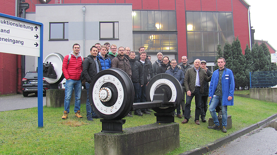 A group of interested students Studying Plant-Business-Organization at the college Hochschule Ruhr West visited Gutehoffnungshütte Radsatz GmbH on December 20th 2017 with the aim to have a look at the application of their acquired theoretic knowledge in daily business.